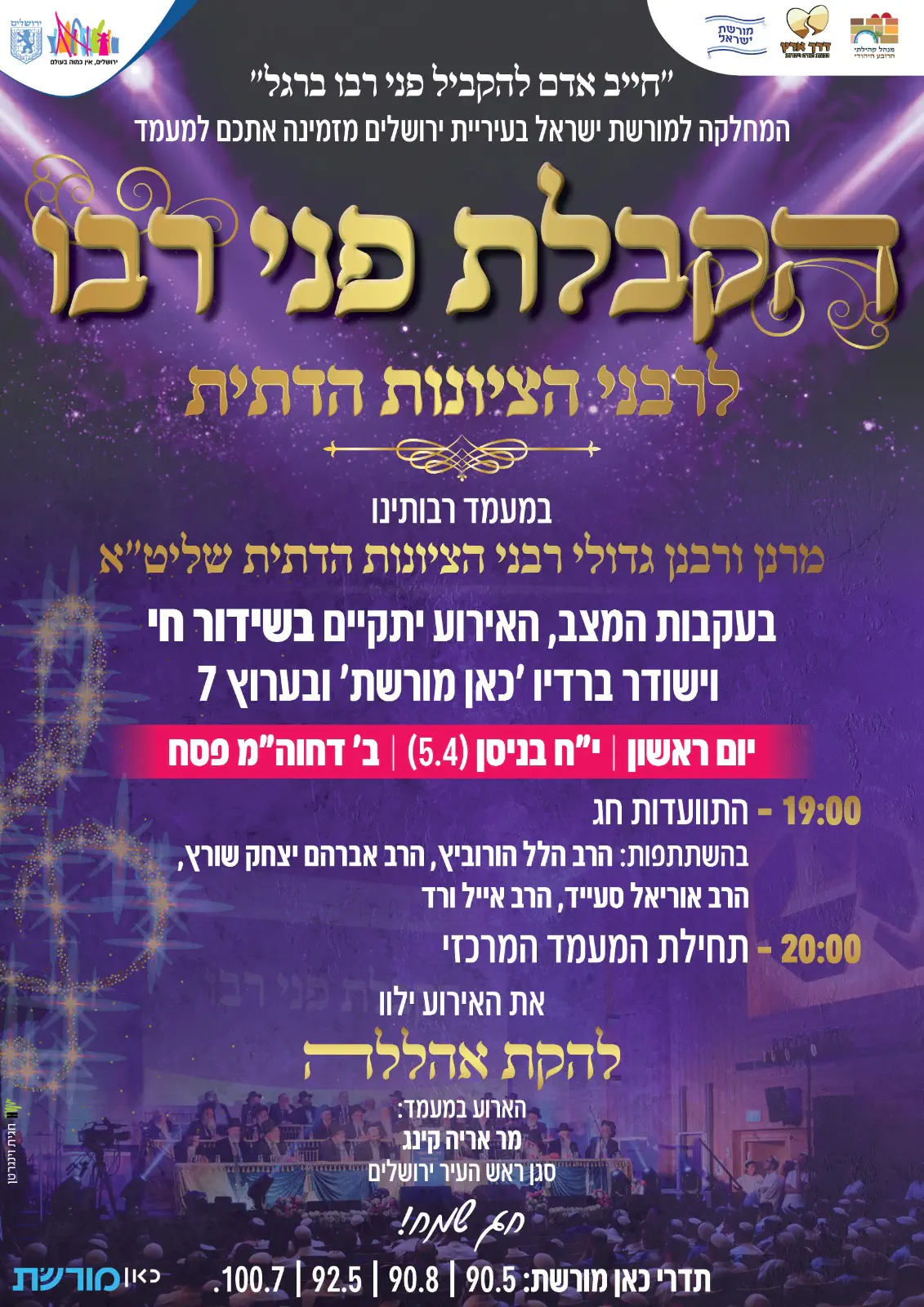 את האירוע יוזמים ומארגנים ארגון דרך ארץ בשיתוף עיריית ירושלים. סגן ראש העיר ירושלים אריה קינג צפוי לכבד בנוכחותו.